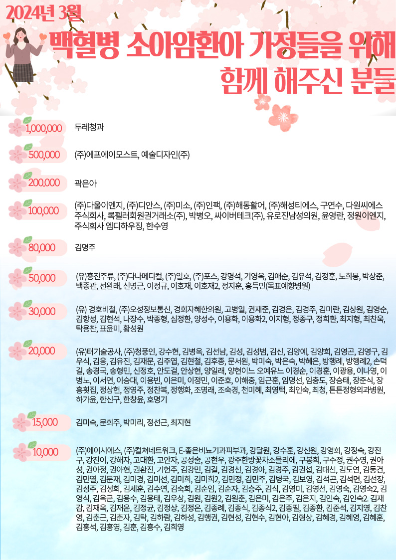 [정기후원회원] 2024년 3월 함께해 주신 분들