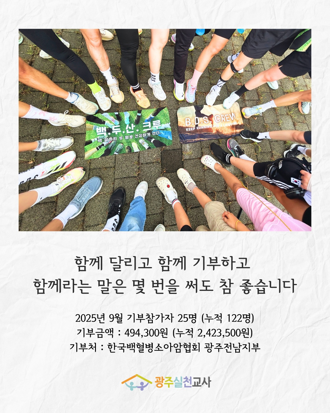 | 광주실천교사회(회장 이해중) 백두산크루 9월 달리기 후원 스토리 | ||